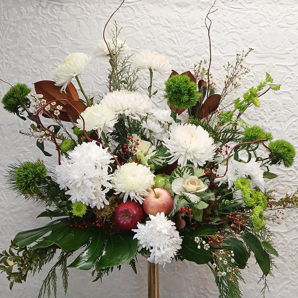 Each arrangement is crafted using the florist’s best seasonal blooms and vessels in calming green and white tones. Our designs are intentionally created to be suitable not only for the service, but also for a loved one’s home afterwards—making them a lasting gesture of comfort and support.